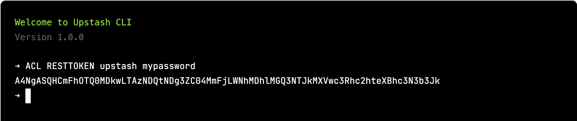 command. Upstash provides a custom ACL subcommand to generate REST tokens:
