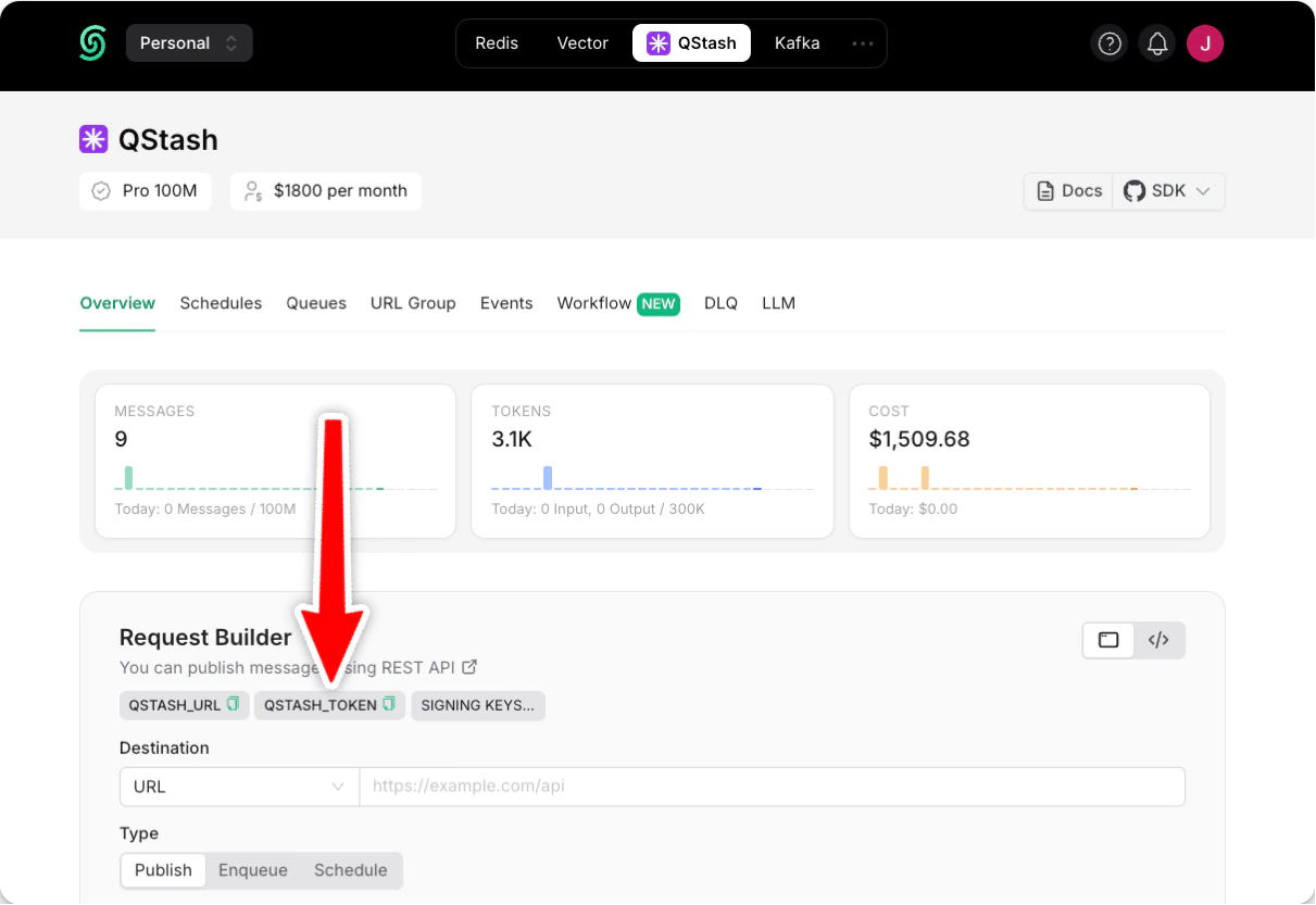 QSTASH_TOKENfrom the Upstash Console. - Update your